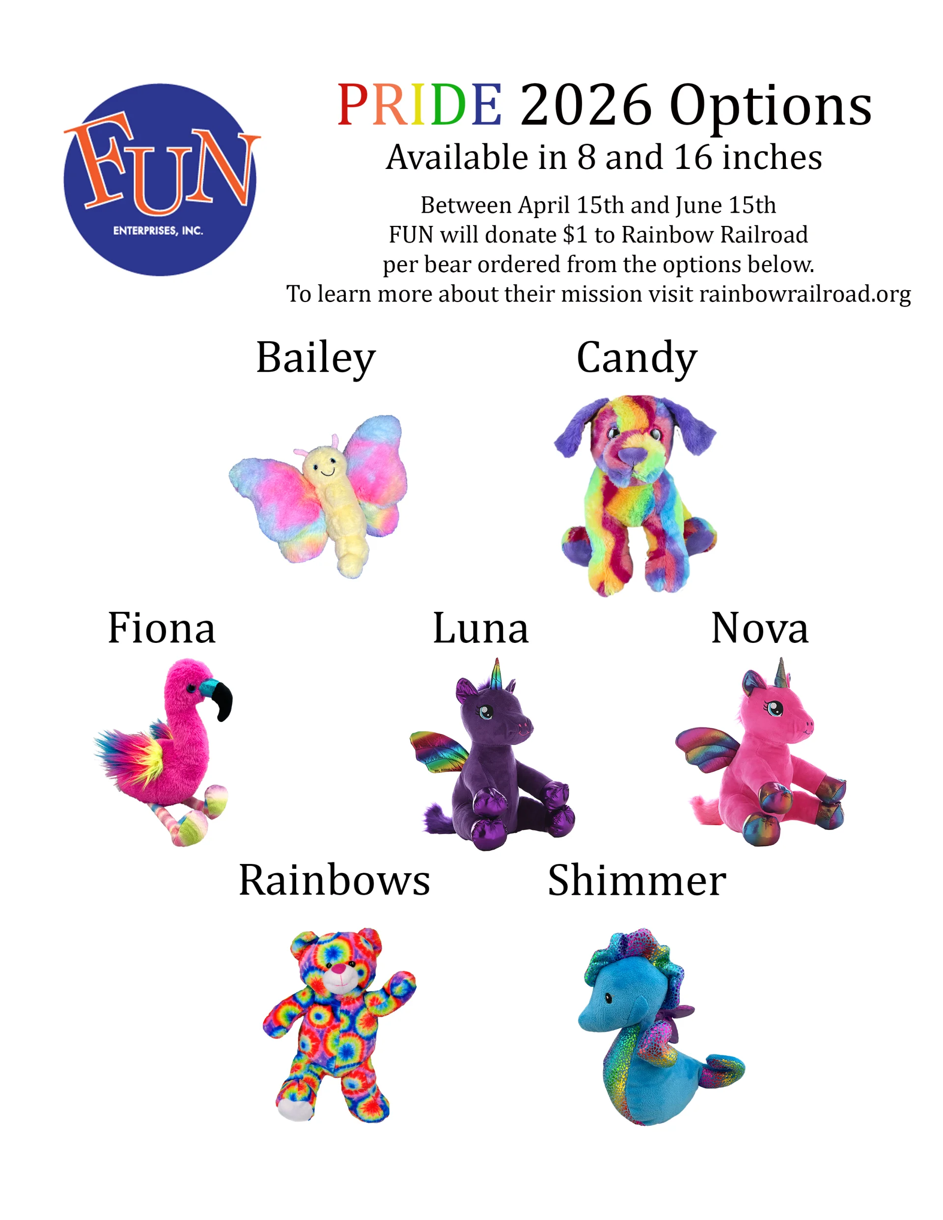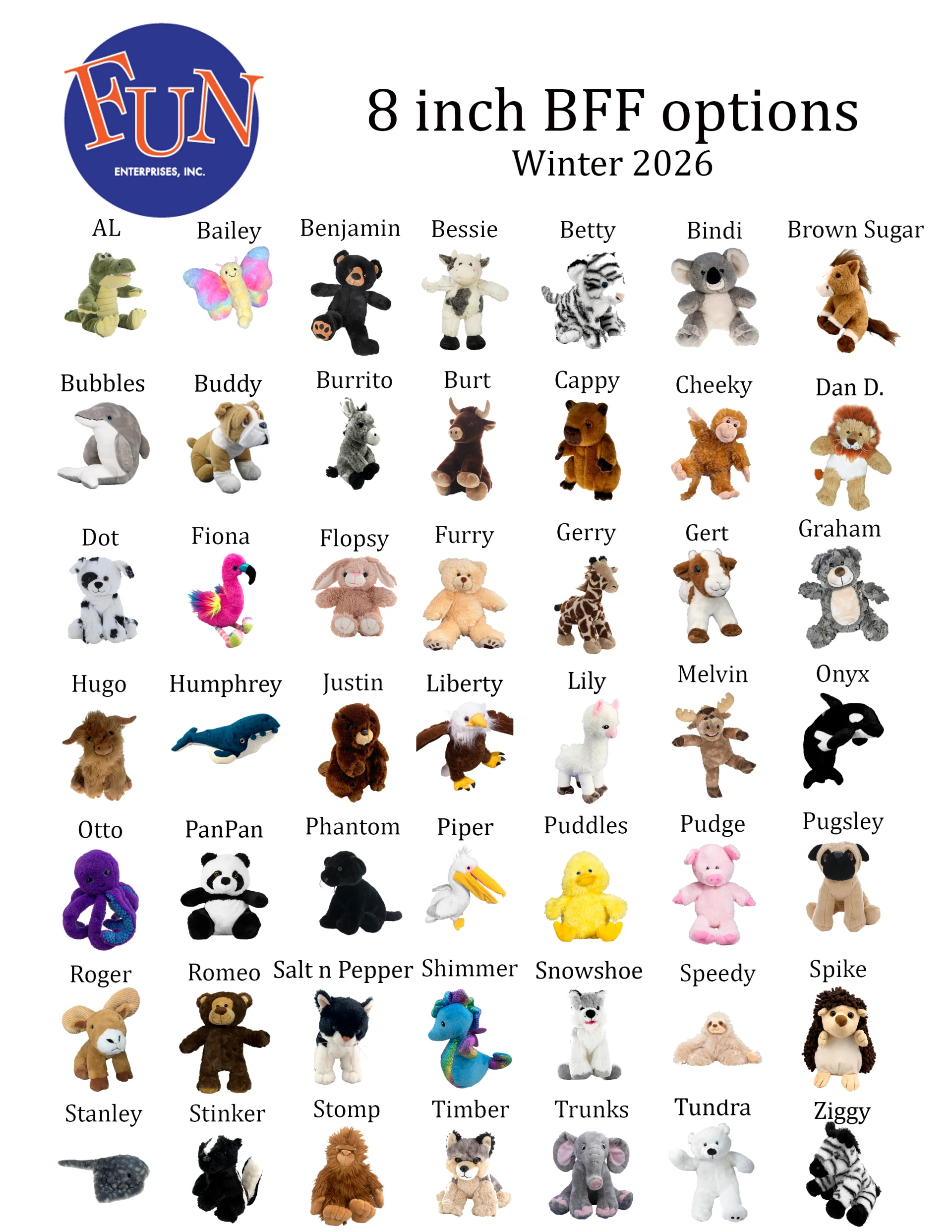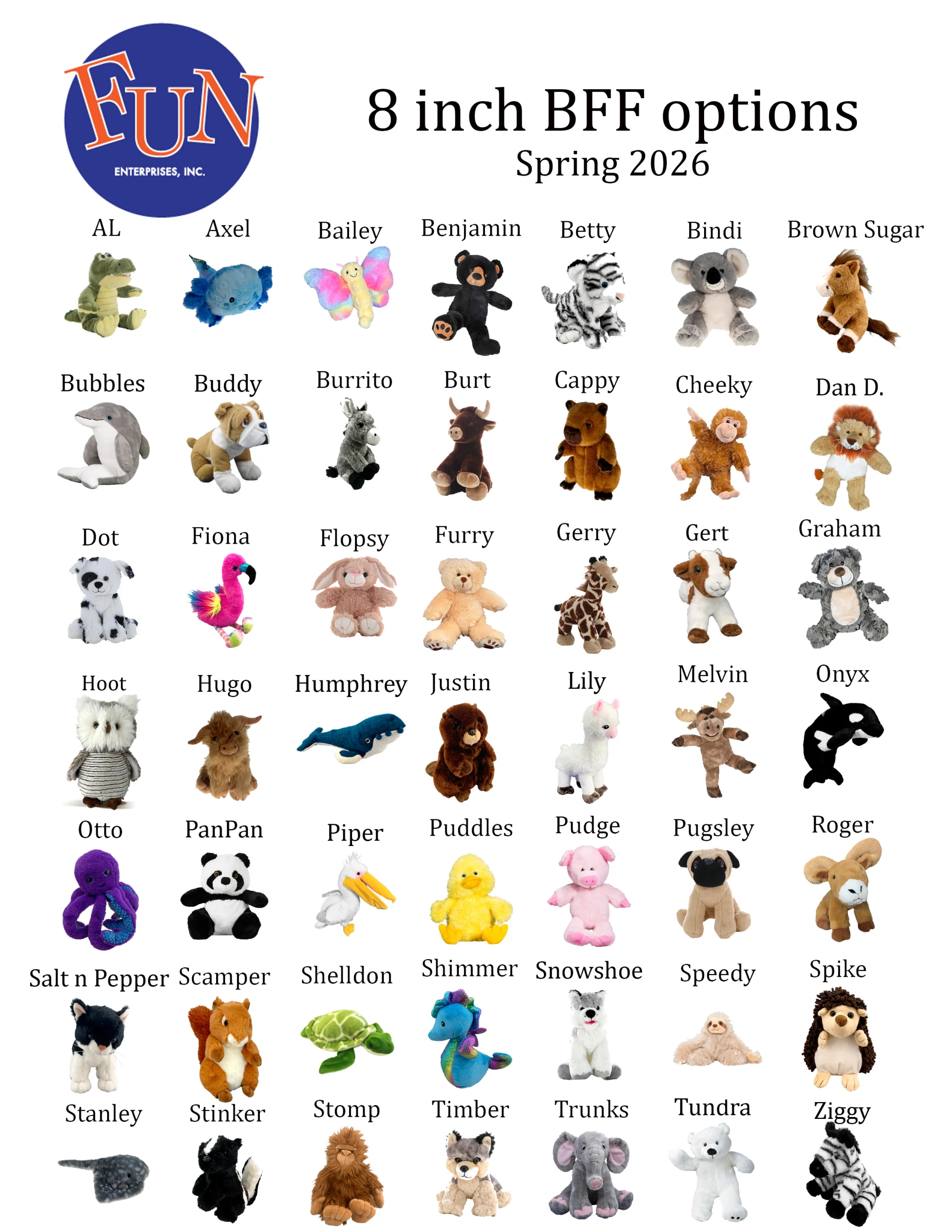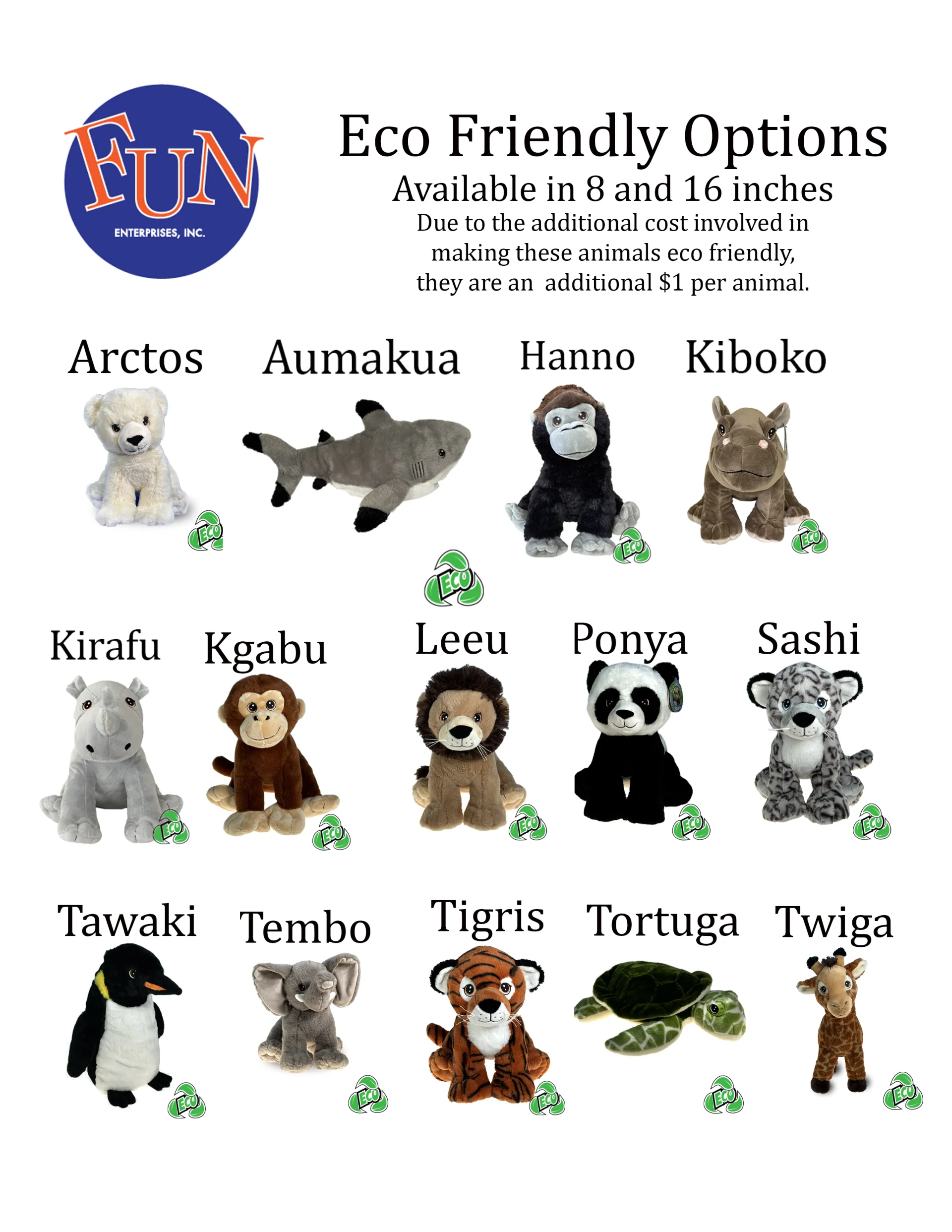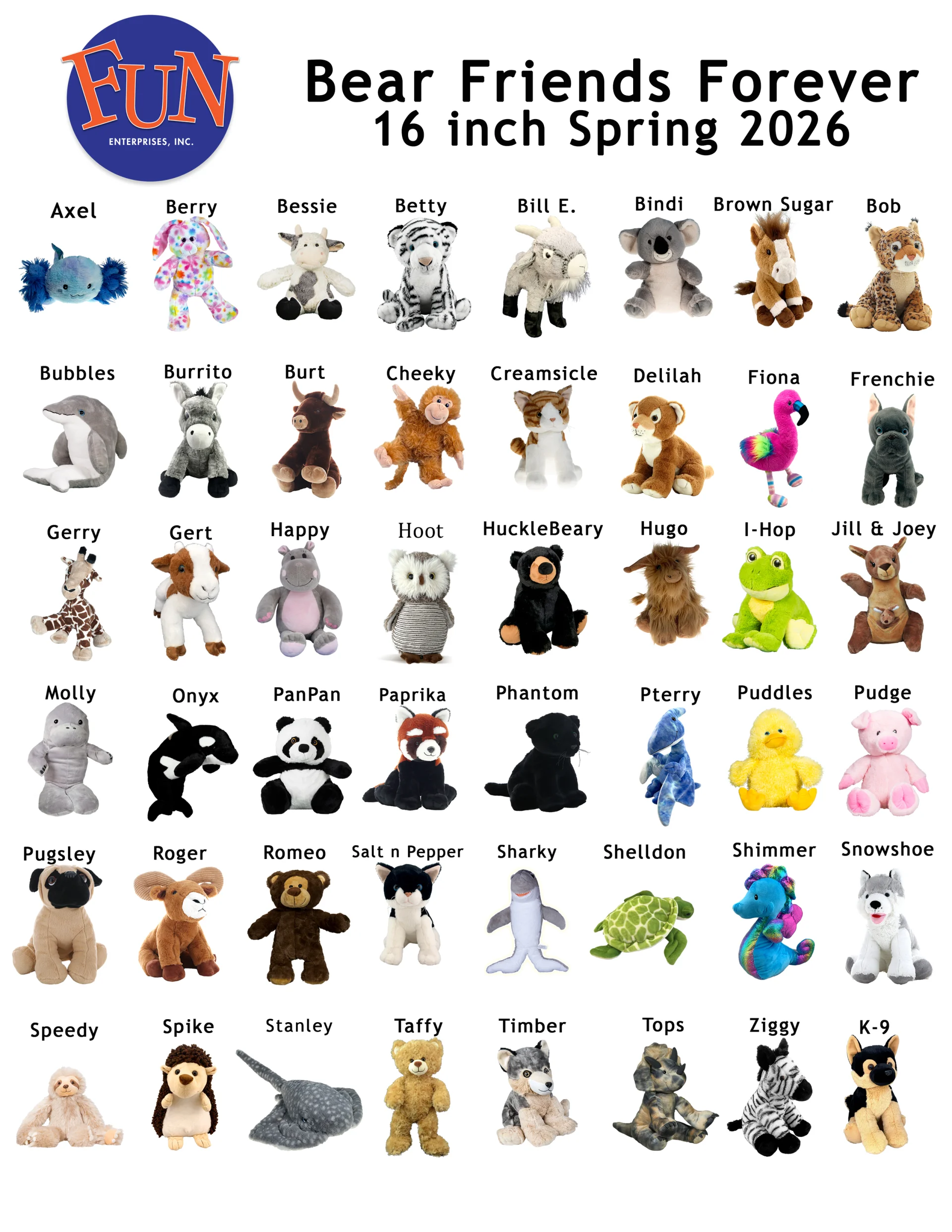 Below are the most recent listing of Animals - 16 inch and 8 inch and Holiday choices.