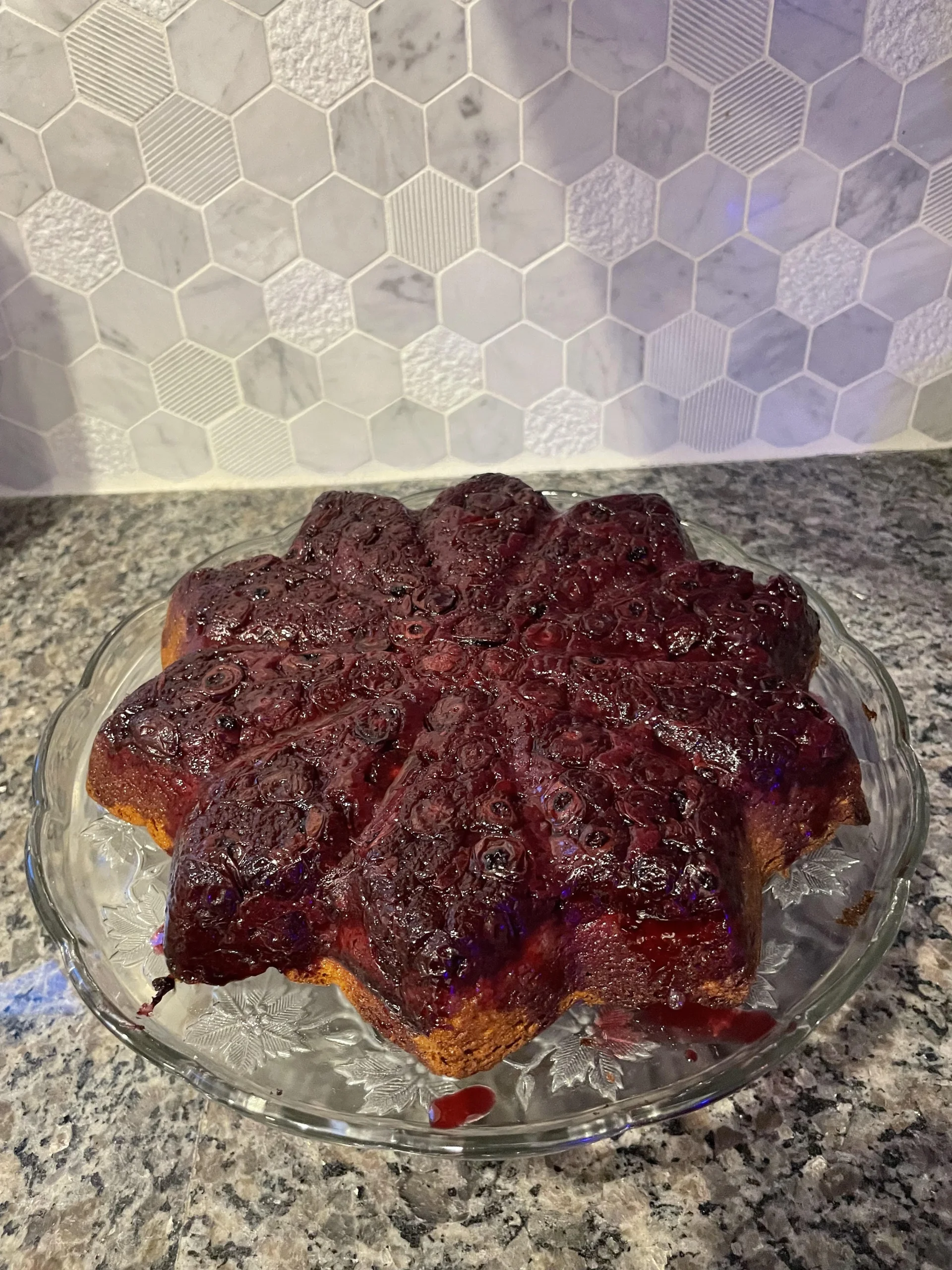 For the topping: Preheat the oven to 350˚. Spray the bottom and sides of a 9-inch round cake pan with cooking spray. In a large bowl, combine the blueberries, brown sugar, cinnamon, lemon juice and salt. Scrape into the prepared cake pan and spread into an even layer.