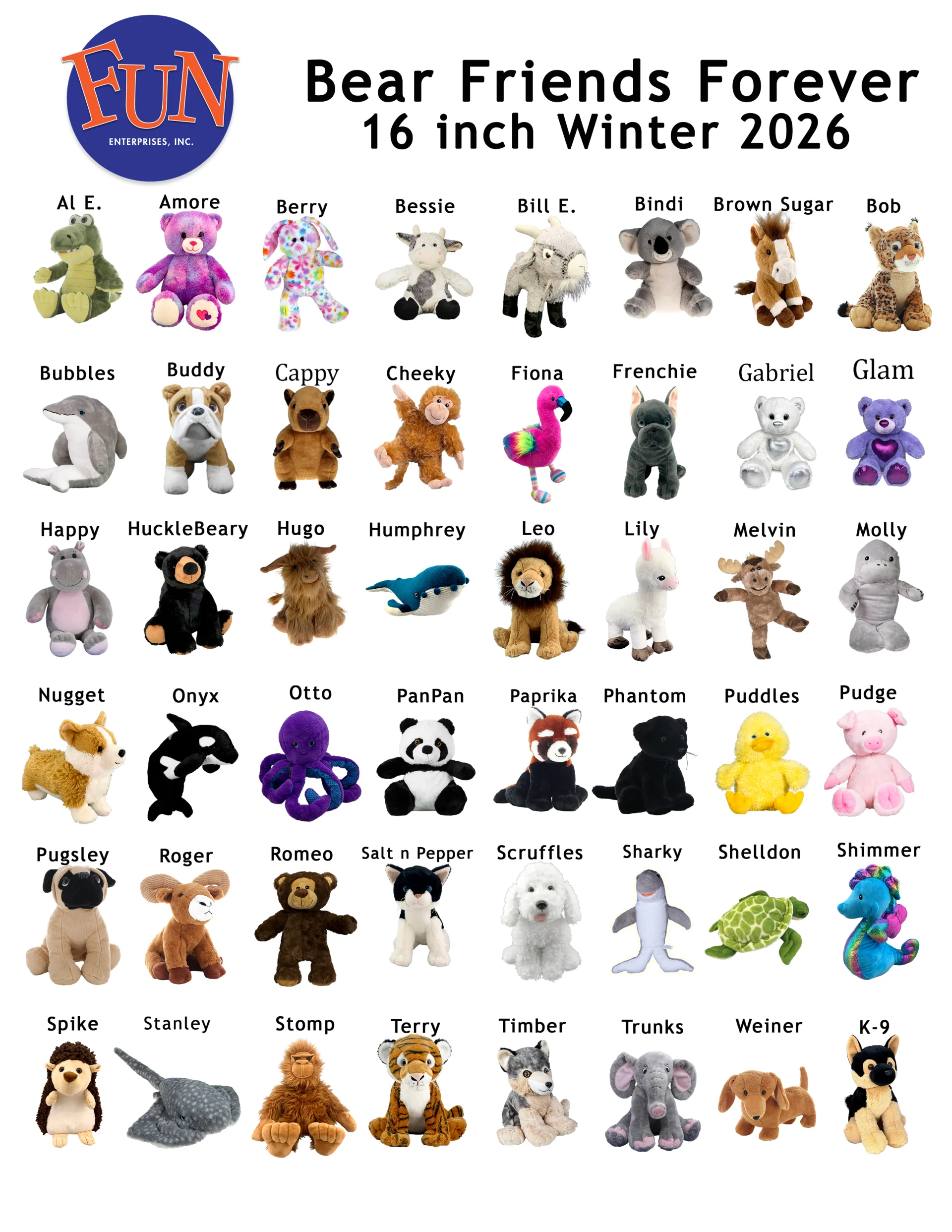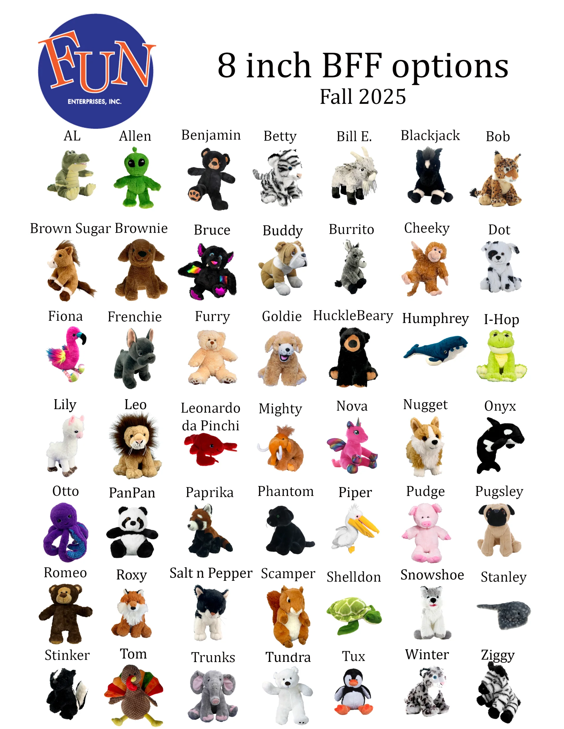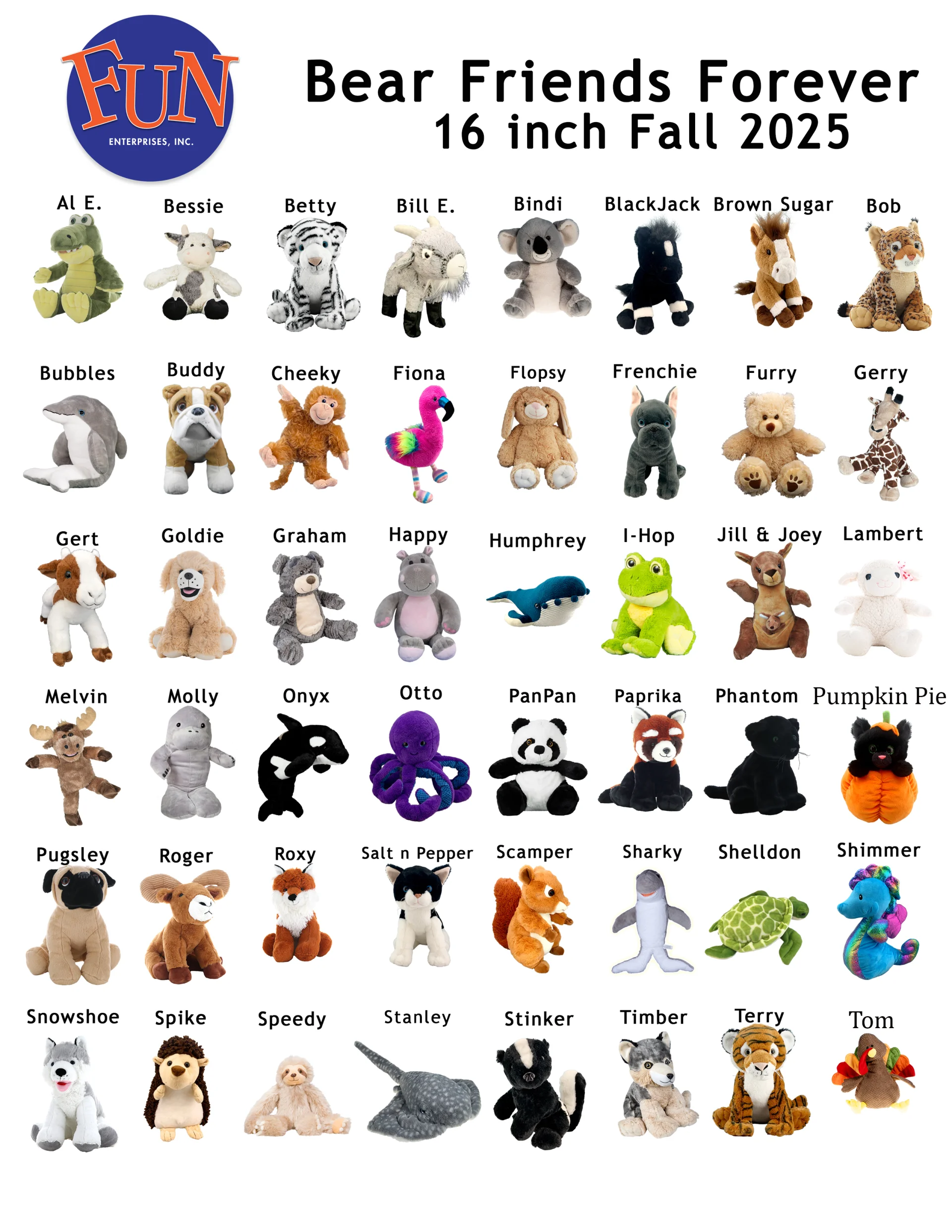 Below are the most recent listing of Animals - 16 inch and 8 inch and Holiday choices.