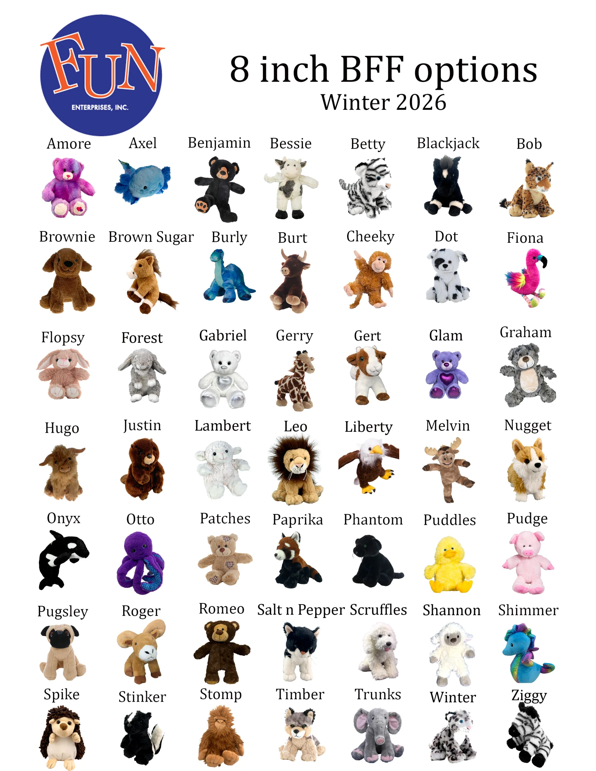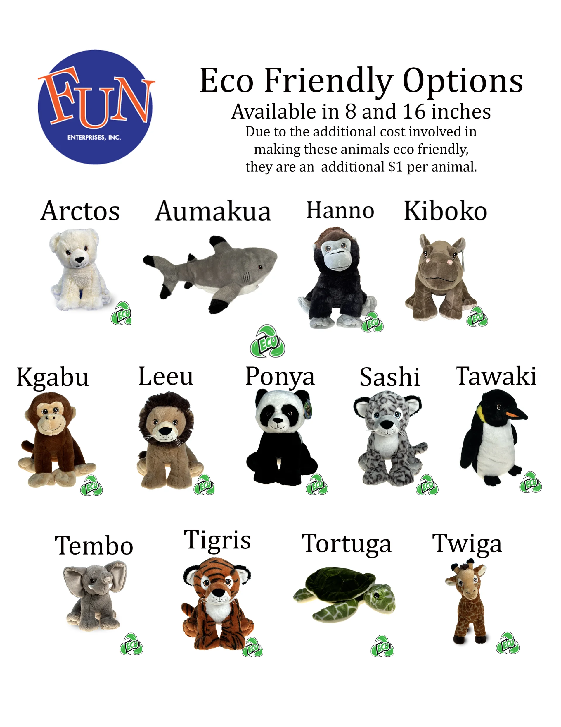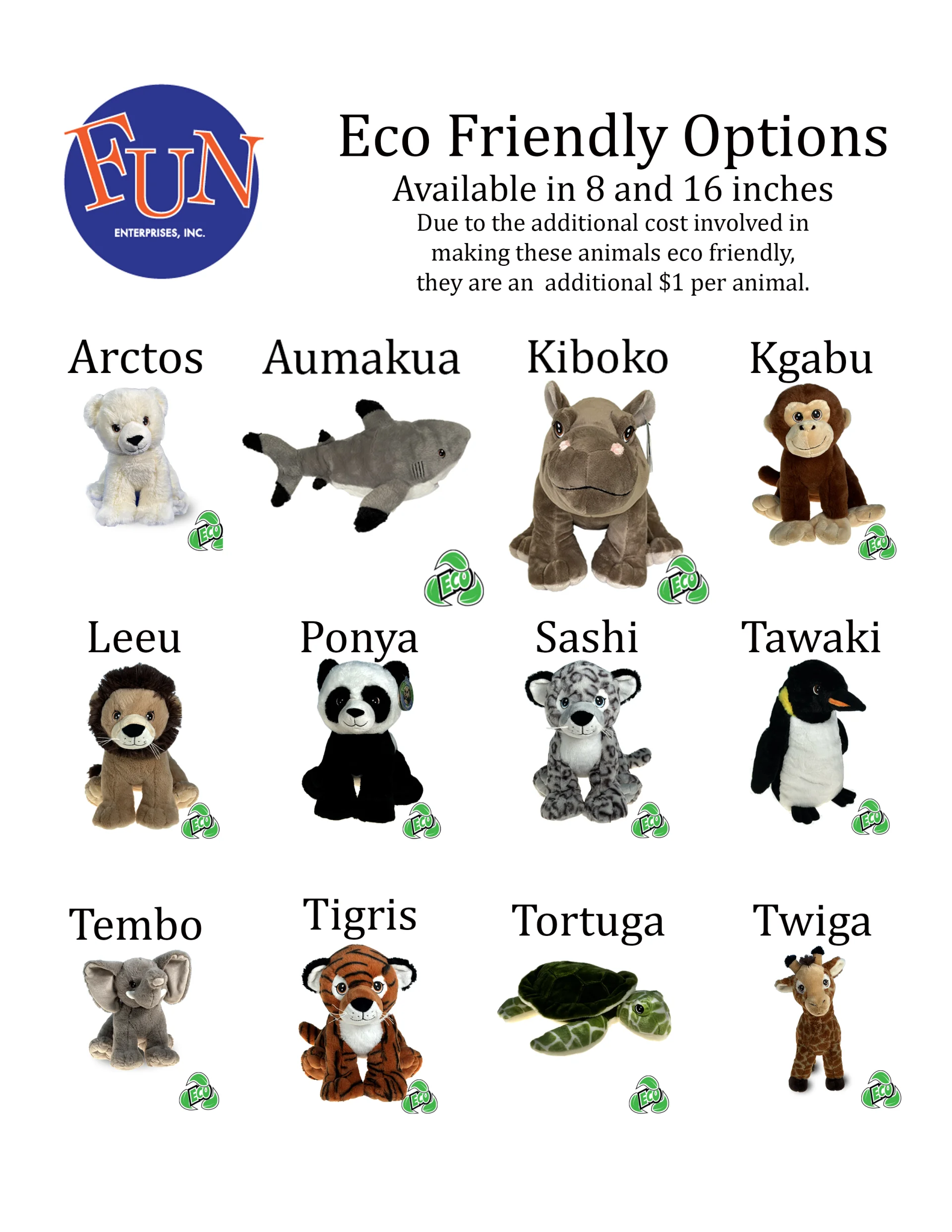Below are the most recent listing of Animals - 16 inch and 8 inch and Holiday choices.