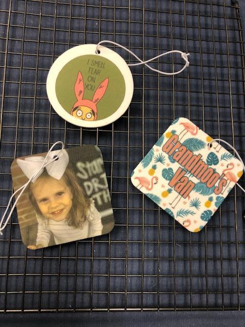 Photo Air Fresheners for your car, room, locker or anywhere that needs a little freshening up! Add an essential oil for a great smell you'll love!